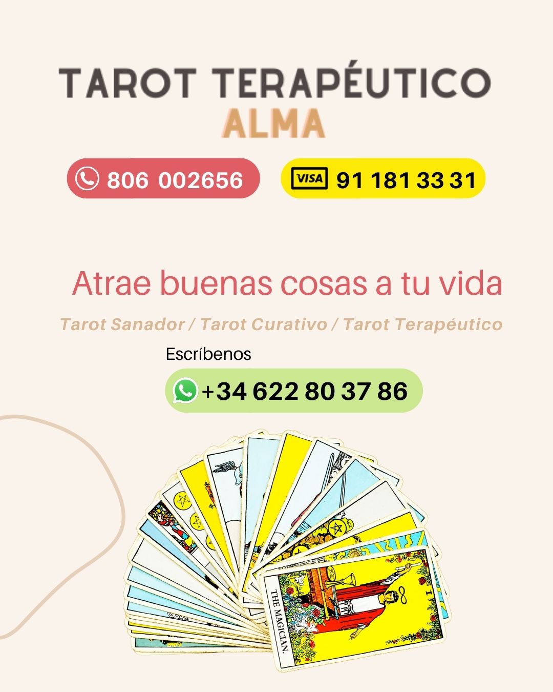 😉 En Tarot Terapéutico Alma contamos con tarotistas profesionales dispuestas a ayudarte cuando los necesites. 👀 Es momento de encontrar respuestas a tus preguntas.