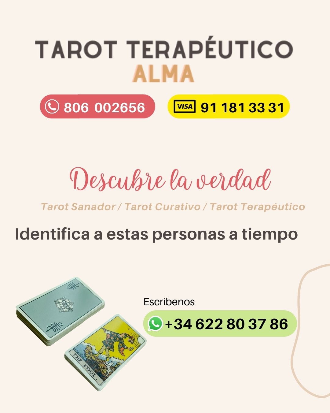 😉 En Tarot Terapéutico Alma contamos con tarotistas profesionales dispuestas a ayudarte cuando los necesites. 👀 Es momento de encontrar respuestas a tus preguntas.